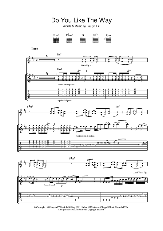 Digital Sheet Music for Do You Like The Way by Lauryn Hill, Johnny Nash, Santana scored for Guitar Tab; id:398747