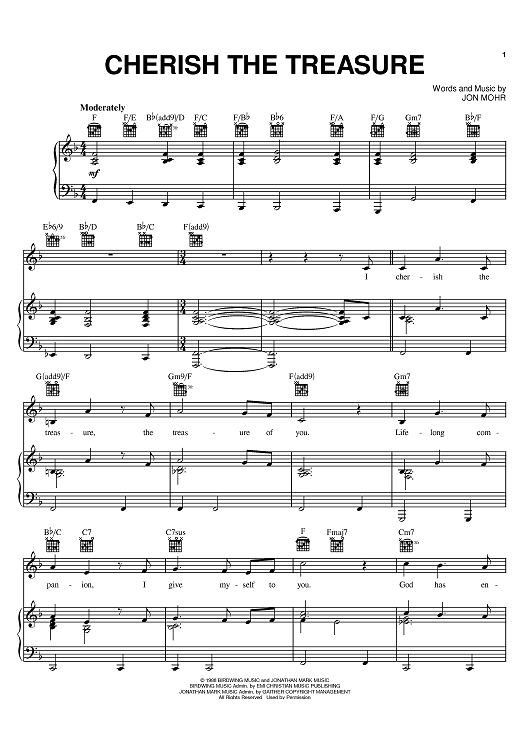 Digital Sheet Music for Cherish The Treasure by Jon Mohr, Steve Green scored for Piano/Vocal/Chords; id:383982