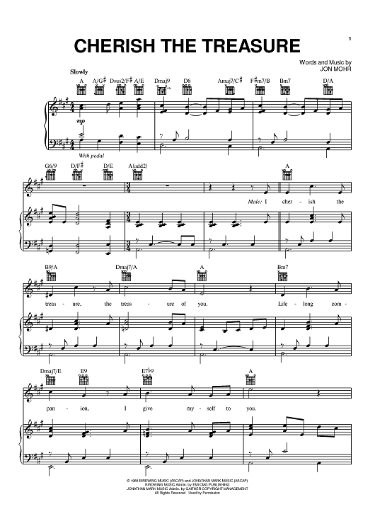 Digital Sheet Music for Cherish The Treasure by Jon Mohr, Steve Green scored for Piano/Vocal/Chords; id:390216