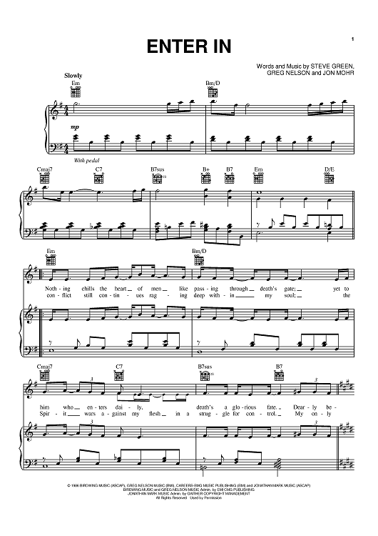 Digital Sheet Music for Enter In by Jon Mohr, Steve Green, Greg Nelson scored for Piano/Vocal/Chords; id:390215