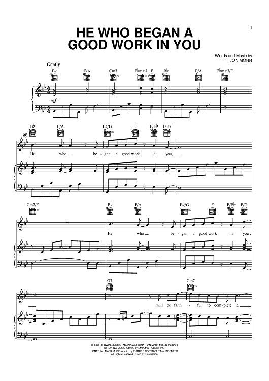 Digital Sheet Music for He Who Began A Good Work In You by Jon Mohr, Steve Green scored for Piano/Vocal/Chords; id:386464