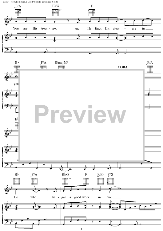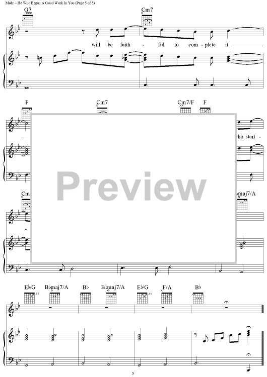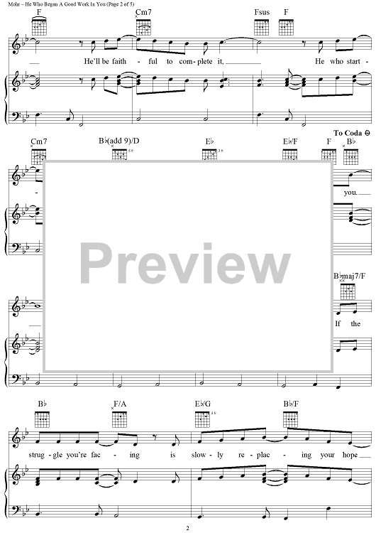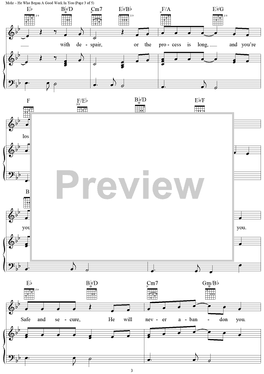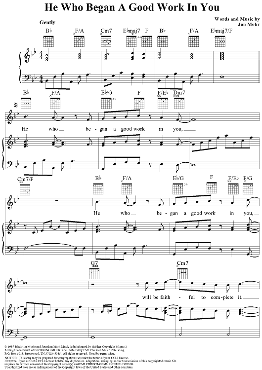 Digital Sheet Music for He Who Began A Good Work In You by Jon Mohr scored for Piano/Vocal/Chords; id:95616