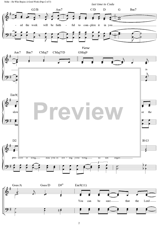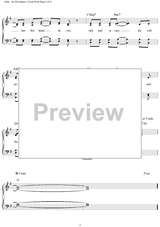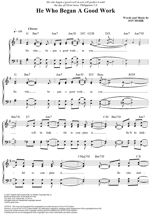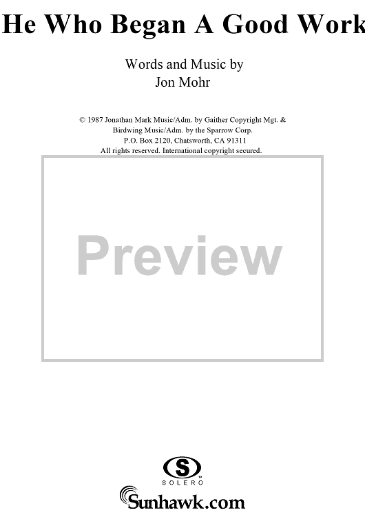 Digital Sheet Music for He Who Began a Good Work by Jon Mohr scored for Piano/Vocal/Chords; id:112465
