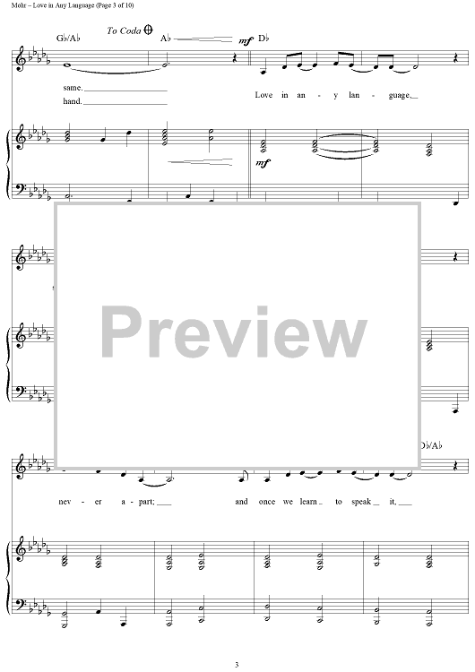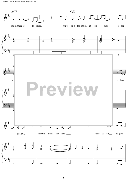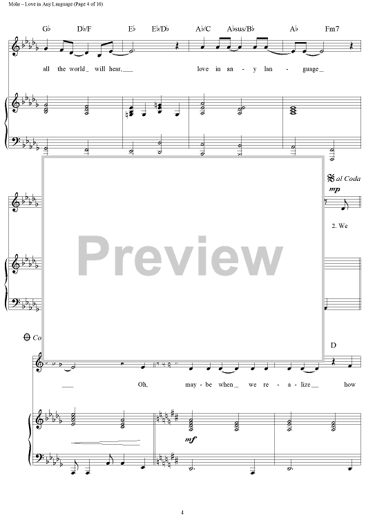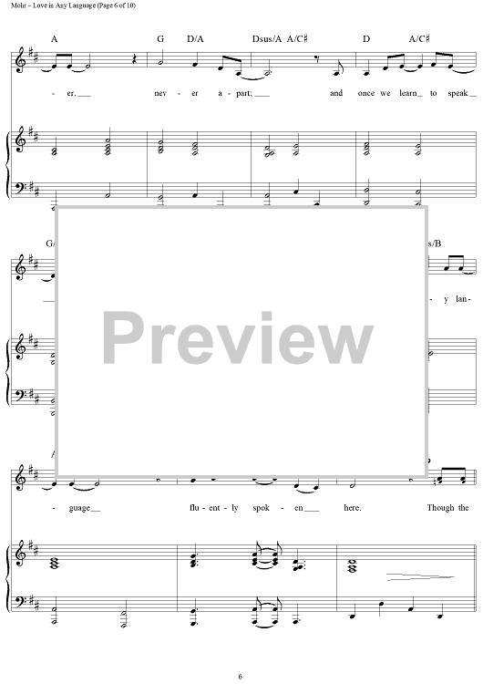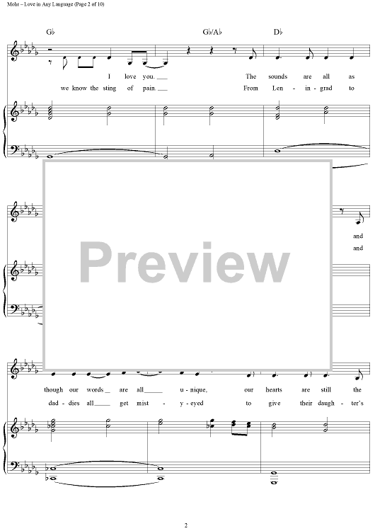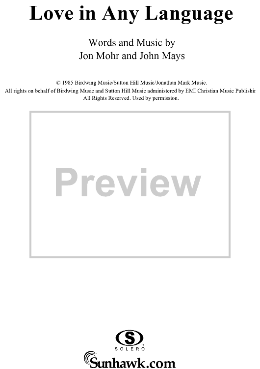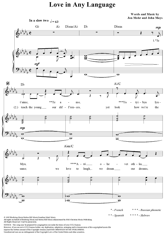 Digital Sheet Music for Love In Any Language by Jon Mohr, John Mays, Sandi Patty scored for Piano/Vocal/Chords; id:119563