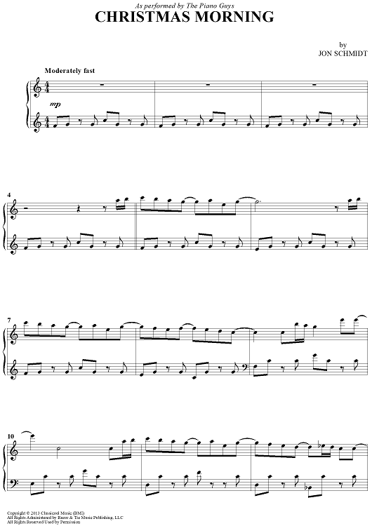 Digital Sheet Music for Christmas Morning by Jon Schmidt, The Piano Guys scored for Piano Solo; id:450029