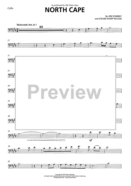 Digital Sheet Music for North Cape (As performed by The Piano Guys) by Jon Schmidt, Steven Sharp Nelson, The Piano Guys scored for Cello and Piano; id:467381