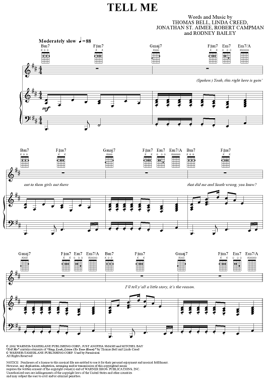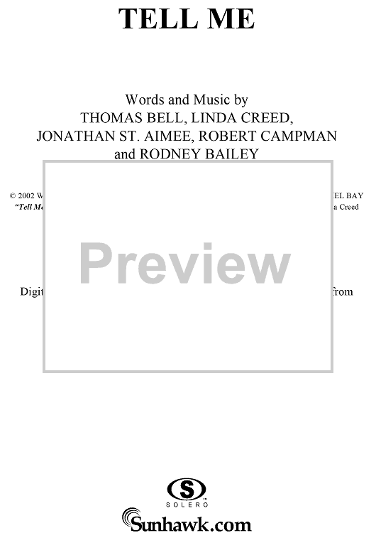Digital Sheet Music for Tell Me by Linda Creed, Thom Bell, Jonathan St. Aimee, Robert Campman, Rodney Bailey, Smilez & Southstar scored for Piano/Vocal/Chords; id:295033