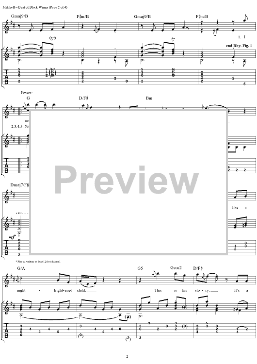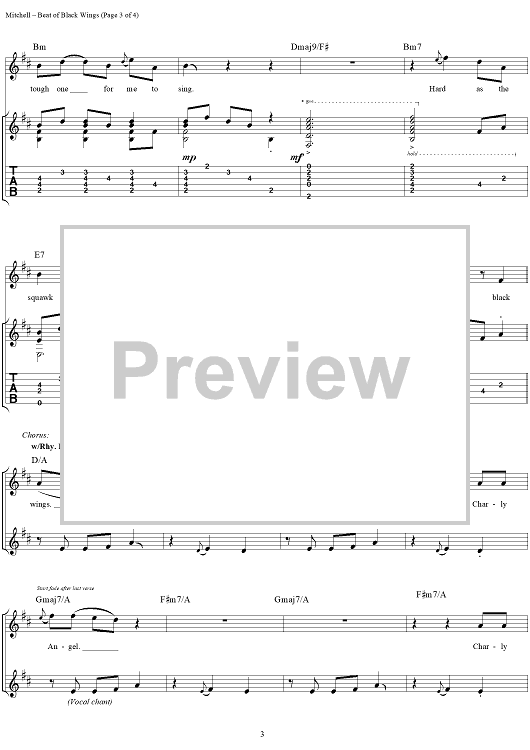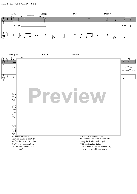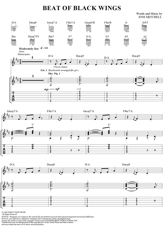 "Beat of Black Wings" Sheet Music by Joni Mitchell