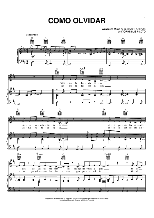 Digital Sheet Music for Como Olvidar by Jorge Luis Piloto, Gustavo Arenas scored for Piano/Vocal/Chords; id:371798