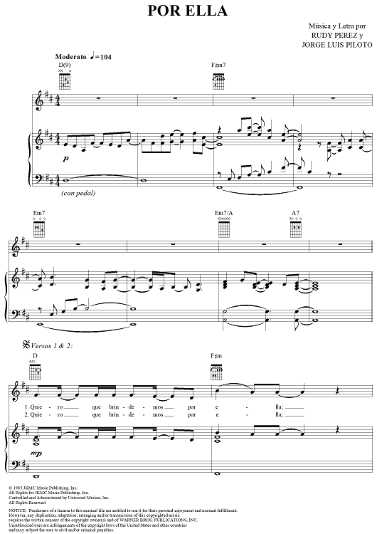 Digital Sheet Music for Por Ella by Jose Feliciano, Rudy Perez, Jorge Luis Piloto, Jose Jose scored for Piano/Vocal/Chords; id:285181