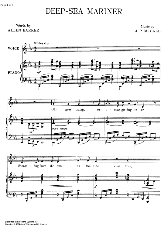 Digital Sheet Music for Deep-sea Mariner by , J. P. McCall scored for Voice/Piano; id:348376