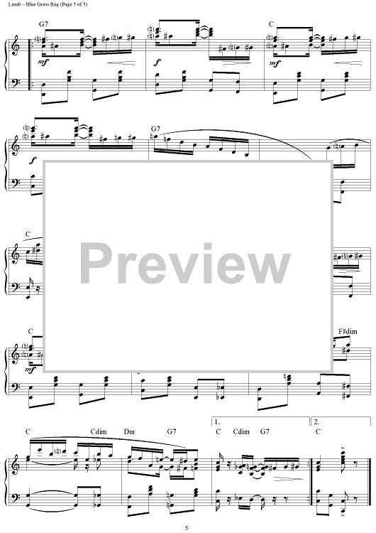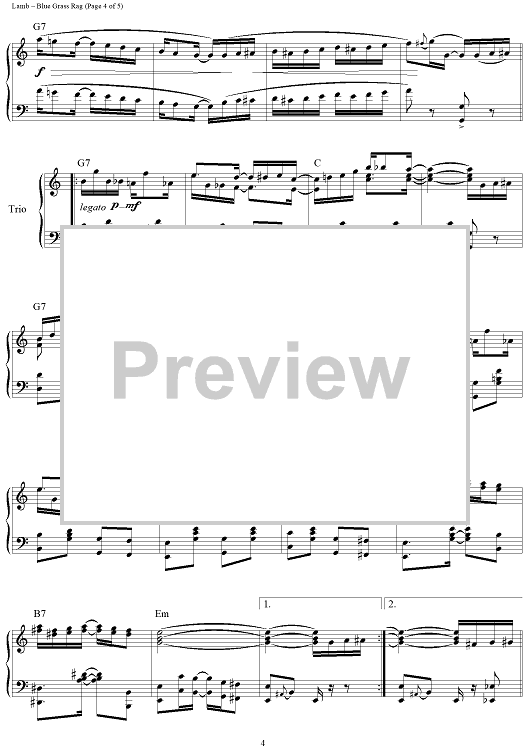 Digital Sheet Music for Blue Grass Rag by Joseph F. Lamb scored for Piano Solo; id:432923