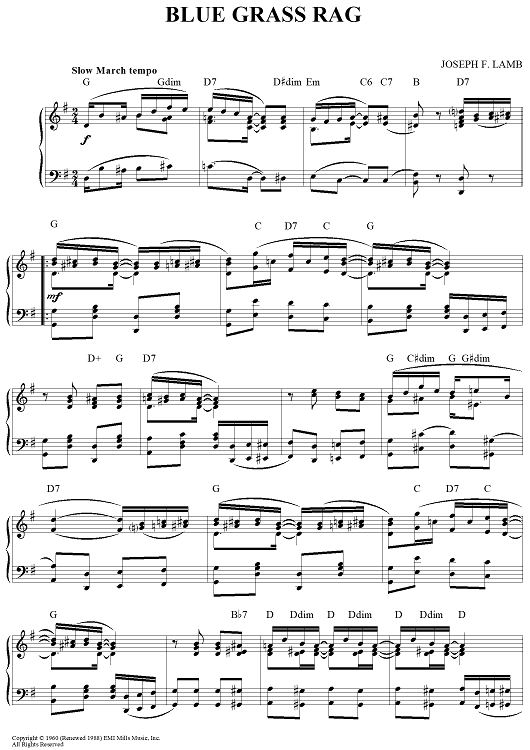 "Blue Grass Rag" Sheet Music by Joseph F. Lamb