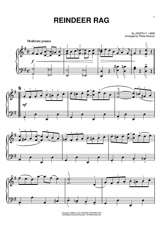 Digital Sheet Music for Reindeer Rag by Joseph F. Lamb, Phillip Keveren scored for Easy Piano; id:388642