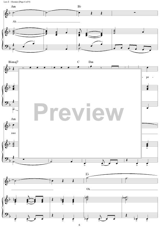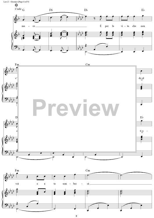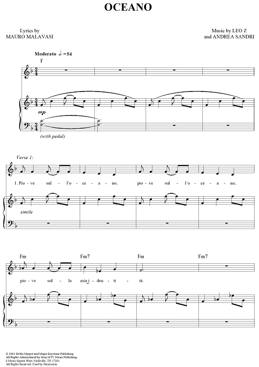 Digital Sheet Music for Oceano by Mauro Malavasi, Josh Groban, Andrea Sandri, Leo Zee scored for Piano/Vocal/Chords; id:361868