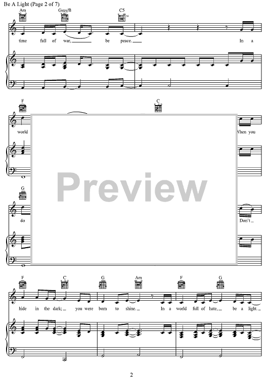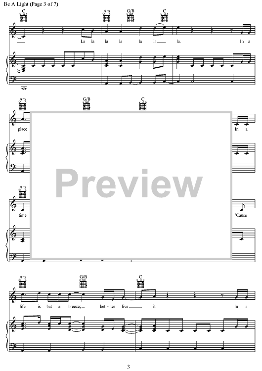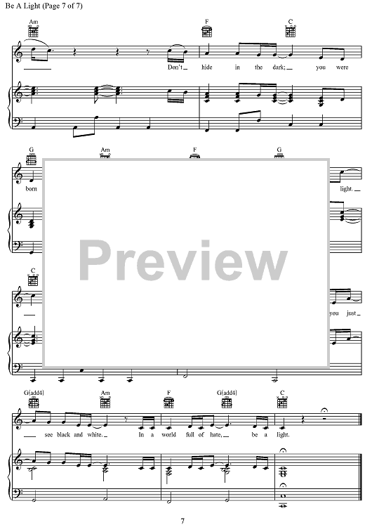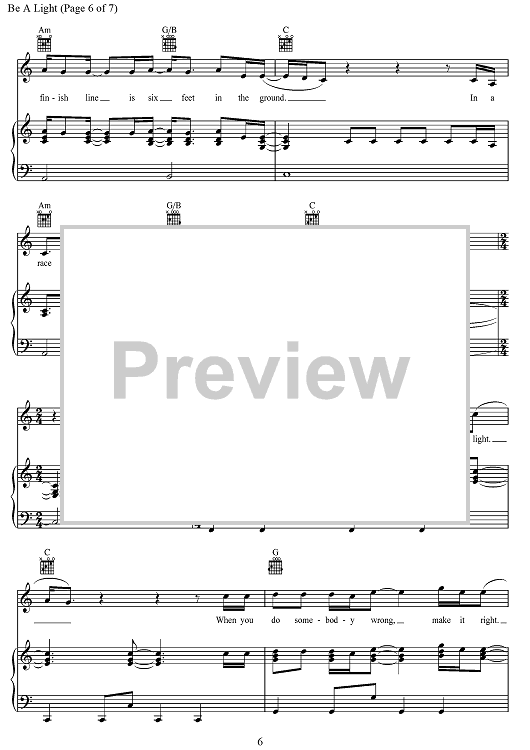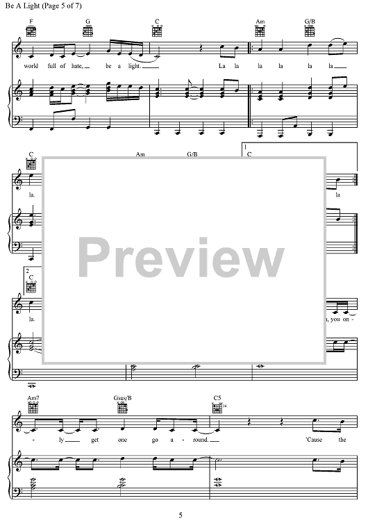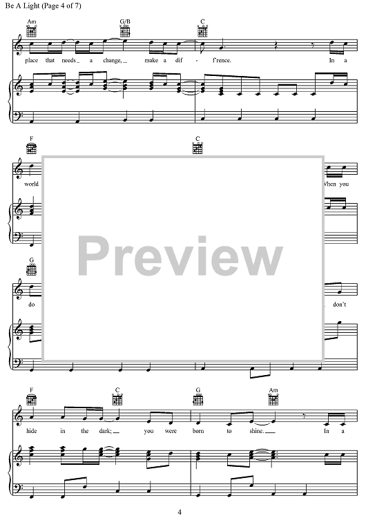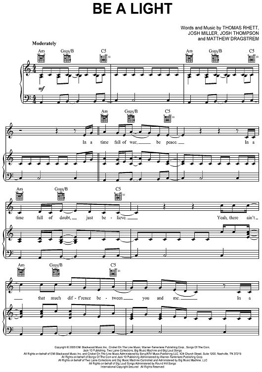 Digital Sheet Music for Be A Light by Joshua Thompson, Joshua Miller, Thomas Rhett, Matthew Dragstrem scored for Piano/Vocal/Chords; id:468233
