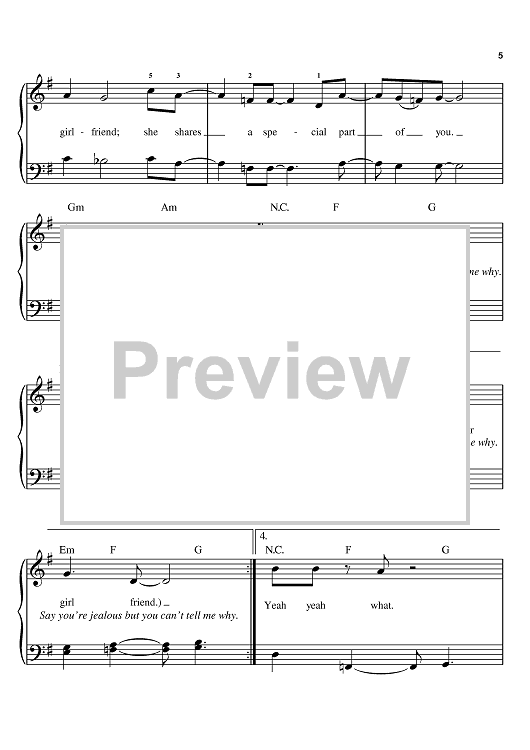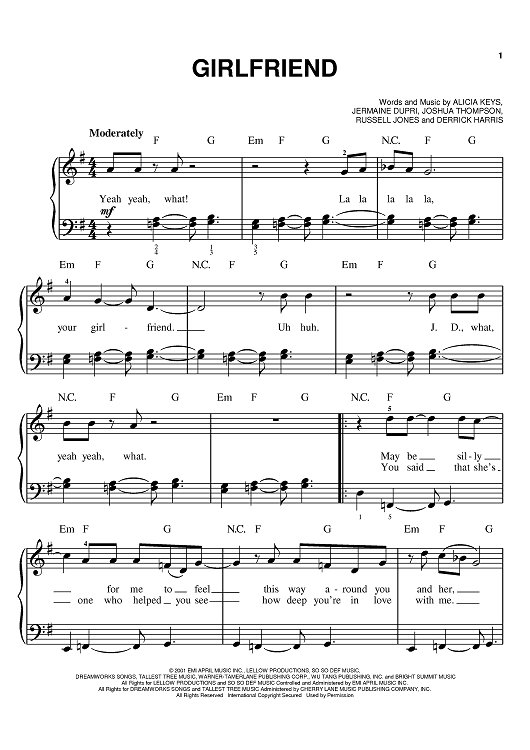 Digital Sheet Music for Girlfriend by Jermaine Dupri, Joshua Thompson, Alicia Keys scored for Easy Piano; id:371282