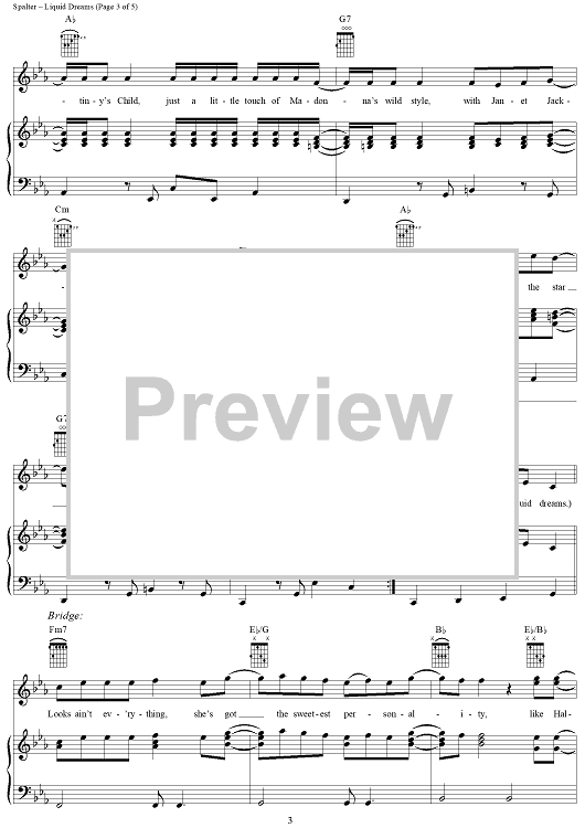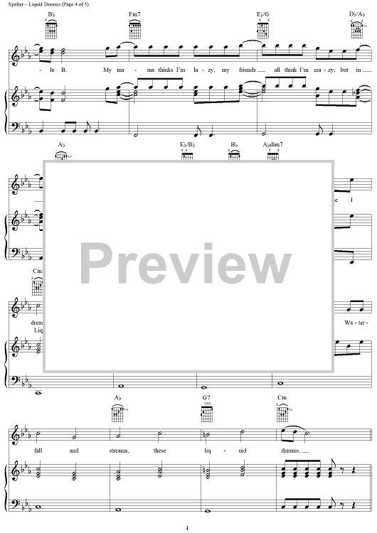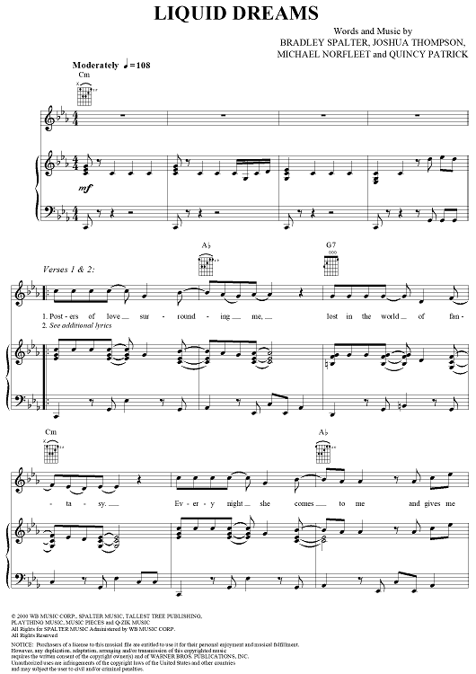 Digital Sheet Music for Liquid Dreams by Joshua Thompson, Michael Norfleet, Quincy Patrick, O-Town, Bradley Spalter scored for Piano/Vocal/Chords; id:284242