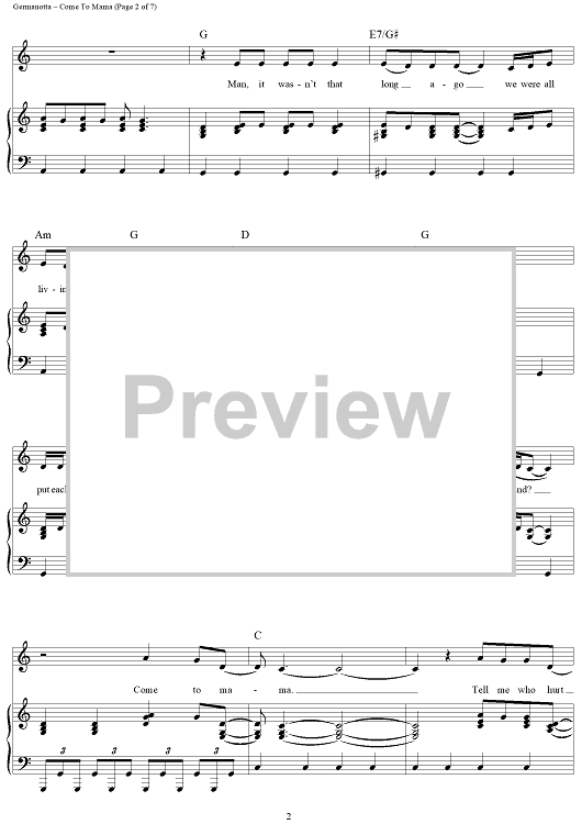 "Come To Mama" Sheet Music by Lady Gaga