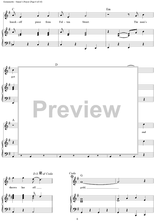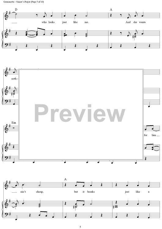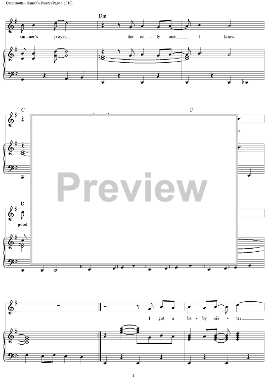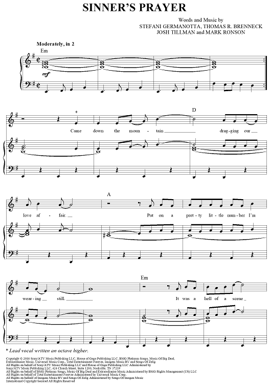 Digital Sheet Music for Sinner's Prayer by Mark Ronson, Stefani Germanotta, Lady Gaga, Joshua Tillman, Thomas Brenneck scored for Piano/Vocal/Chords; id:464815