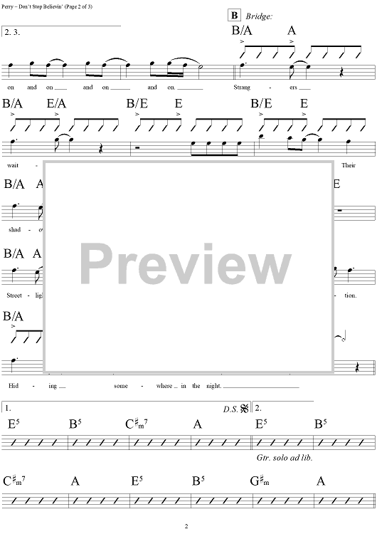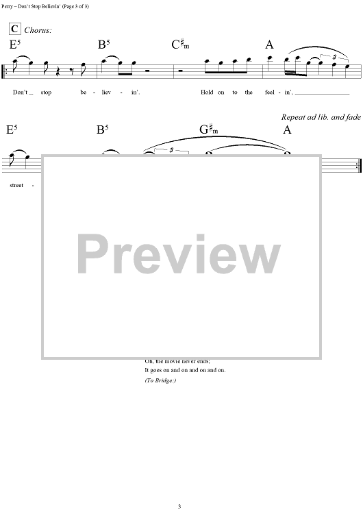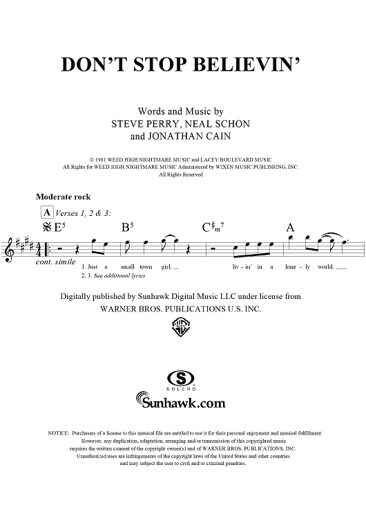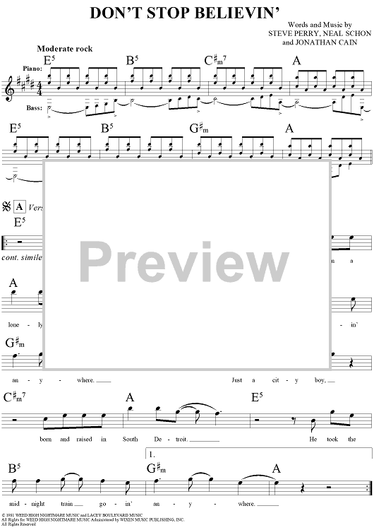 Digital Sheet Music for Don't Stop Believin' by Steve Perry, Neal Schon, Jonathan Cain, Journey scored for Lead Sheet; id:293900