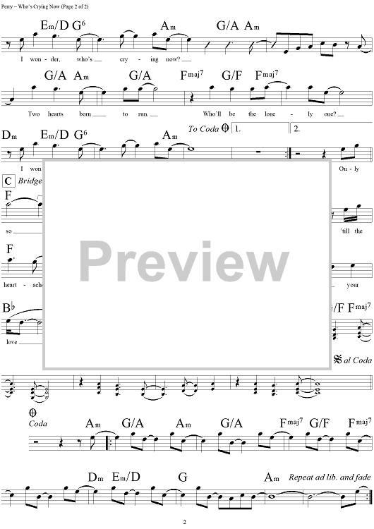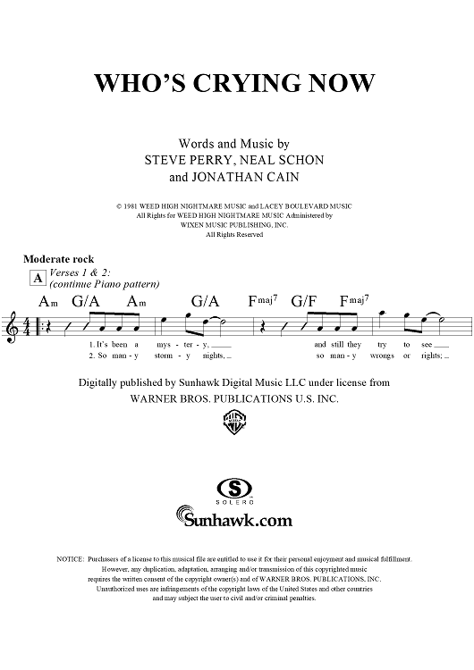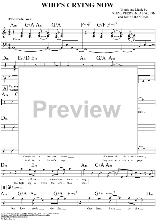 Digital Sheet Music for Who's Crying Now by Steve Perry, Neal Schon, Jonathan Cain, Journey scored for Lead Sheet; id:293821