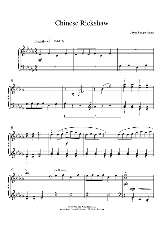 Digital Sheet Music for Chinese Rickshaw by Joyce Schatz Pease scored for Piano; id:402826