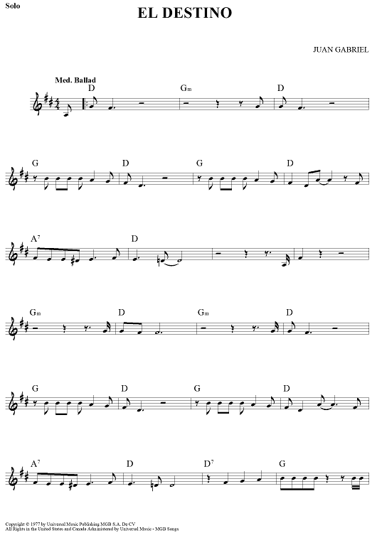 Digital Sheet Music for El Destino by Juan Gabriel scored for Lead Sheet; id:448582