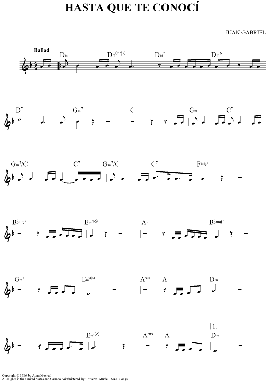"Hasta Que Te Conocí" Sheet Music by Juan Gabriel