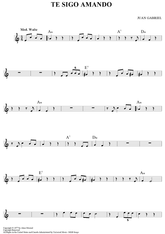 "Te Sigo Amando" Sheet Music by Juan Gabriel