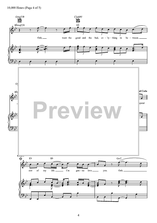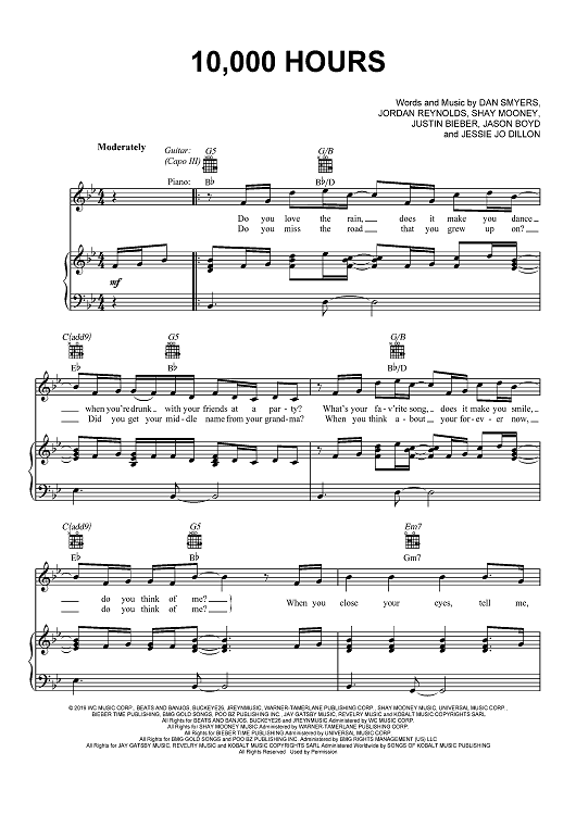 Digital Sheet Music for 10,000 Hours by Jason Boyd, Justin Bieber, Dan Smyers, Shay Mooney, Dan + Shay, Jordan Reynolds, Jessie Jo Dillon scored for Piano/Vocal/Chords; id:467831