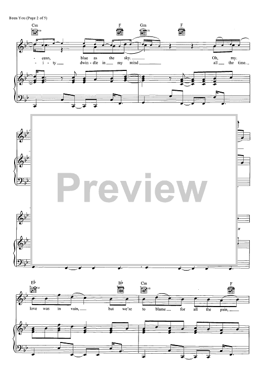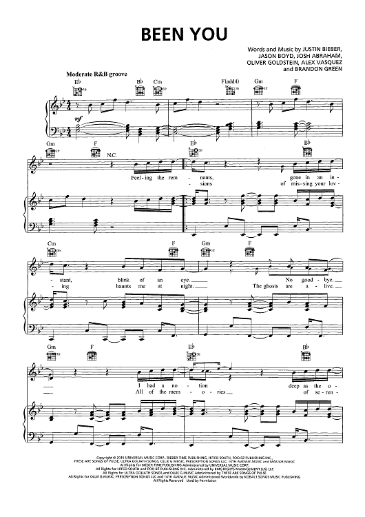 Digital Sheet Music for Been You by Oliver Goldstein, Jason Boyd, Justin Bieber, Josh Abraham, Alex Vasquez, Brandon Green scored for Piano/Vocal/Chords; id:458374