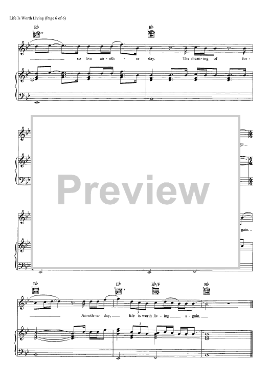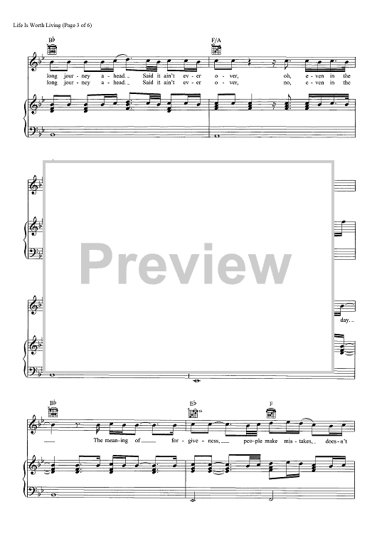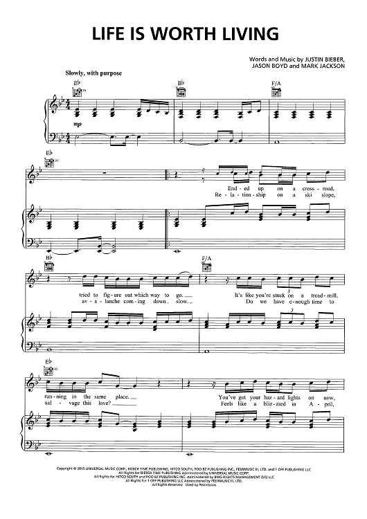 Digital Sheet Music for Life Is Worth Living by Jason Boyd, Justin Bieber, Mark Jackson scored for Piano/Vocal/Chords; id:457736