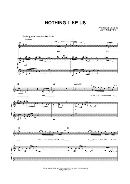 "Nothing Like Us" Sheet Music by Justin Bieber