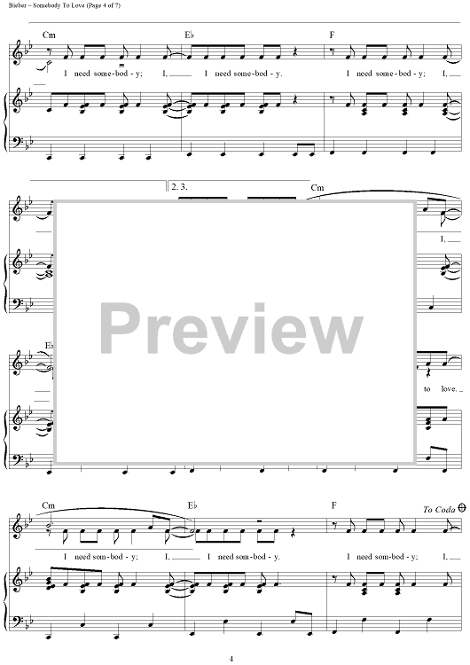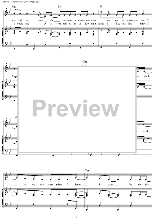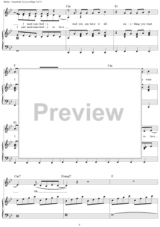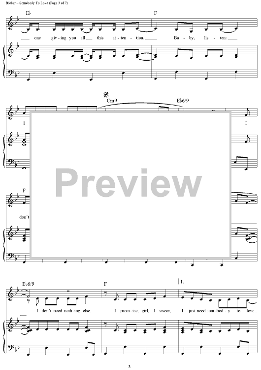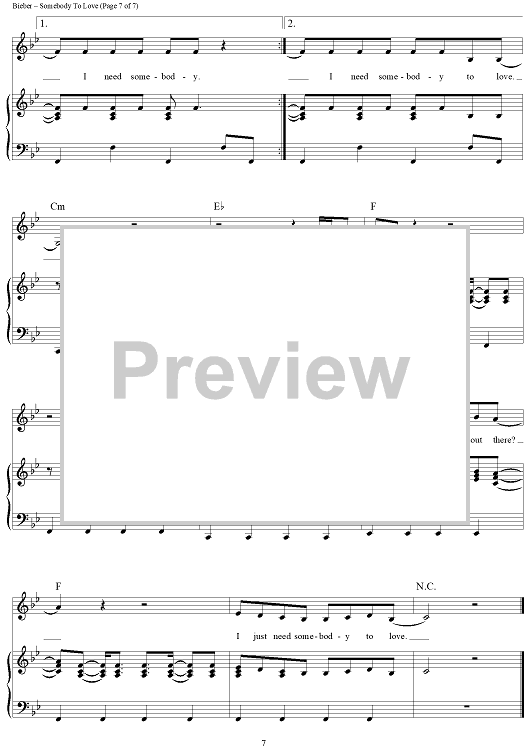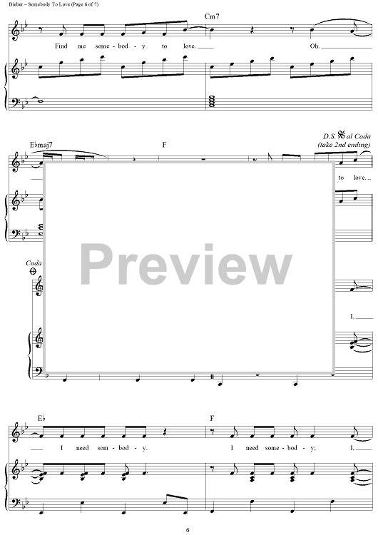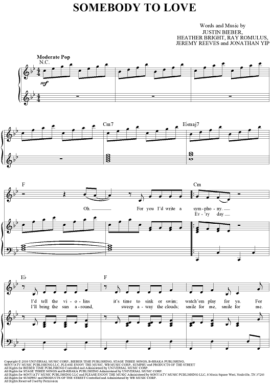 Digital Sheet Music for Somebody to Love by Jeremy Reeves, Justin Bieber, Heather Bright, Ray Romulus, Jonathan Yip scored for Piano/Vocal/Chords; id:416115
