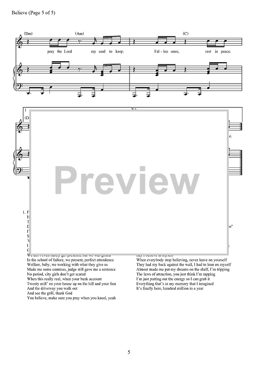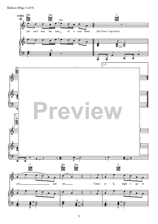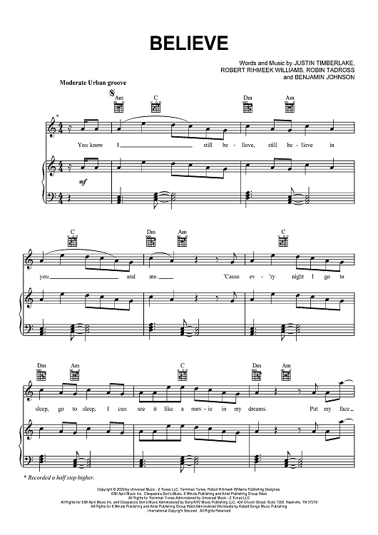 Digital Sheet Music for Believe by Robin Tadros, Justin Timberlake, Meek Mill, Benjamin Johnson scored for Piano/Vocal/Chords; id:468045