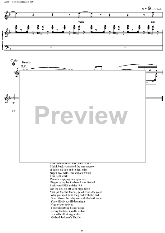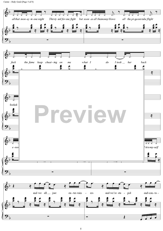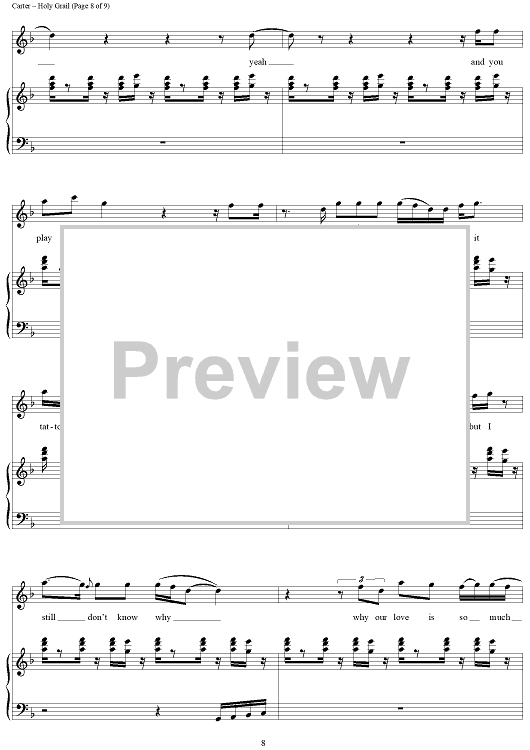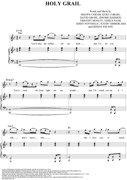 Digital Sheet Music for Holy Grail by Timothy Mosley, Shawn Carter, Kurt Cobain, Dave Grohl, Terius Nash, Krist Novoselic, Jerome Harmon, Ernest Wilson, Justin Timberlake scored for Piano/Vocal/Chords; id:437775