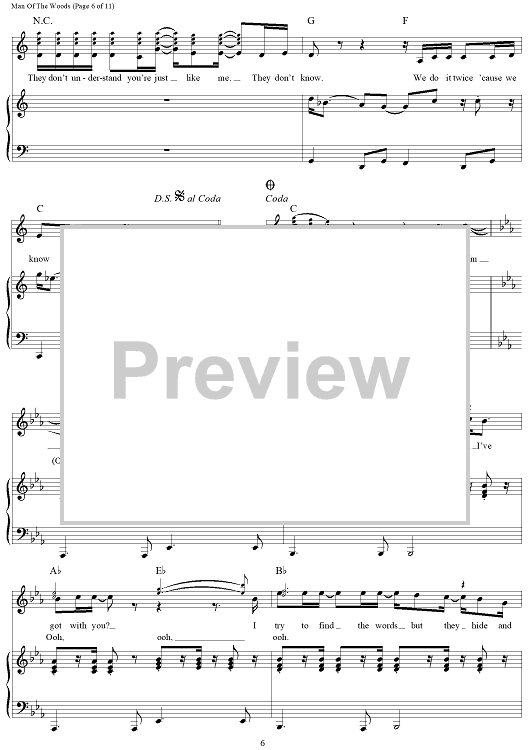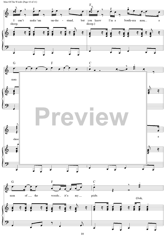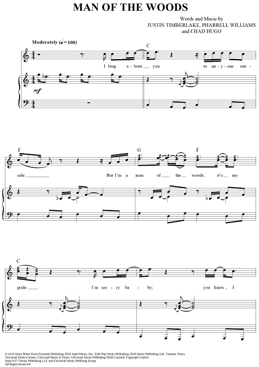 Digital Sheet Music for Man of the Woods by Justin Timberlake scored for Piano/Vocal/Chords; id:466128