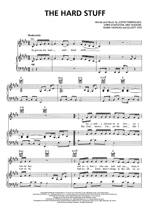 Digital Sheet Music for The Hard Stuff by Eric Hudson, Robin Tadros, Elliott Ives, Justin Timberlake scored for Piano/Vocal/Chords; id:466456