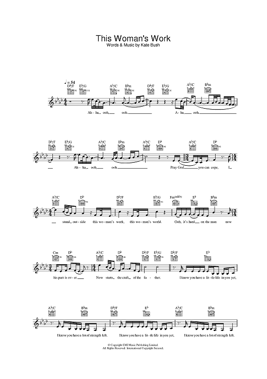 Digital Sheet Music for This Woman's Work by Kate Bush scored for Lead Sheet; id:382866