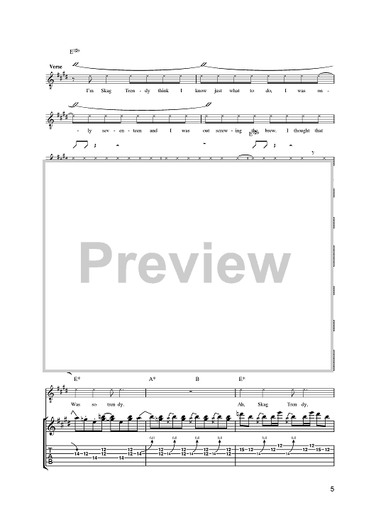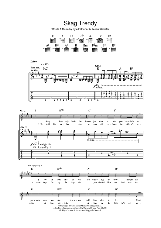 Digital Sheet Music for Skag Trendy by Kyle Falconer, The View, Keiren Webster scored for Guitar Tab; id:396767