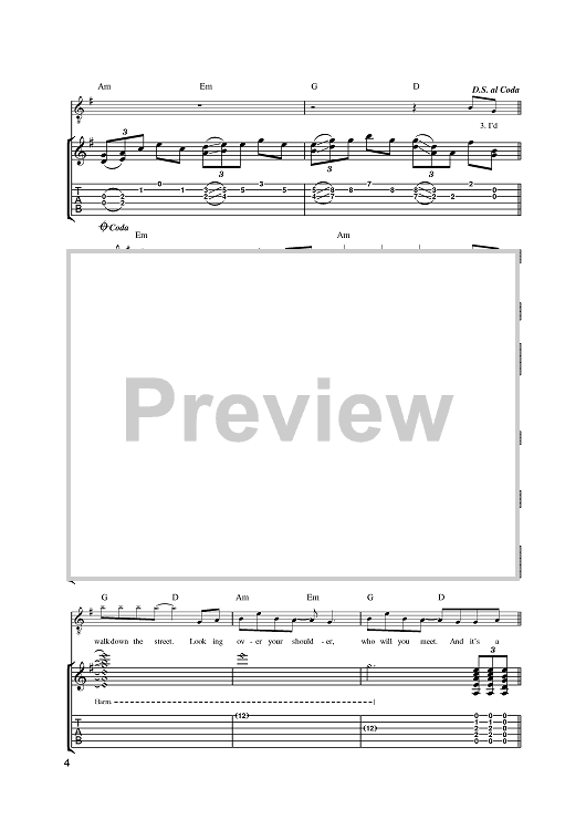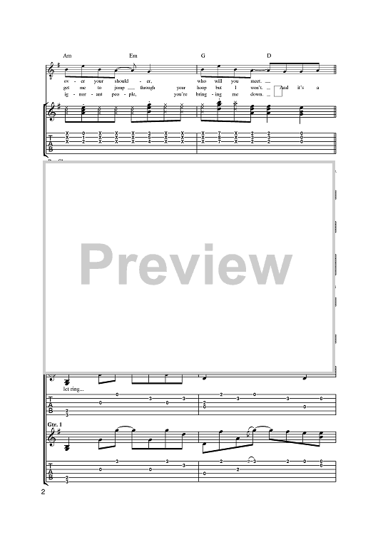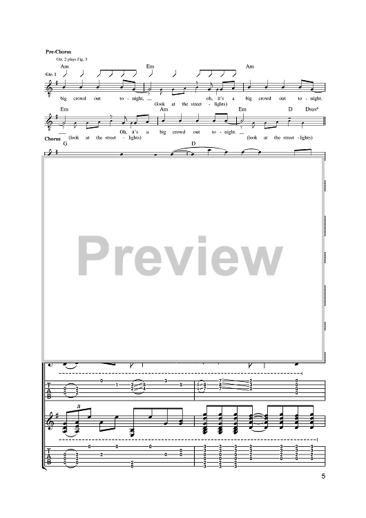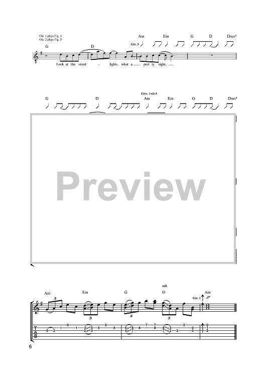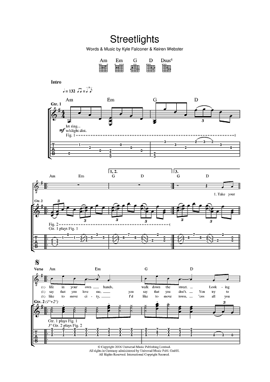 Digital Sheet Music for Streetlights by Kyle Falconer, The View, Keiren Webster scored for Guitar Tab; id:396768
