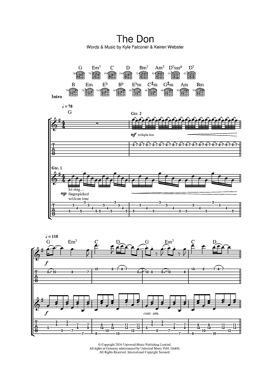 Digital Sheet Music for The Don by Kyle Falconer, The View, Keiren Webster scored for Guitar Tab; id:396763