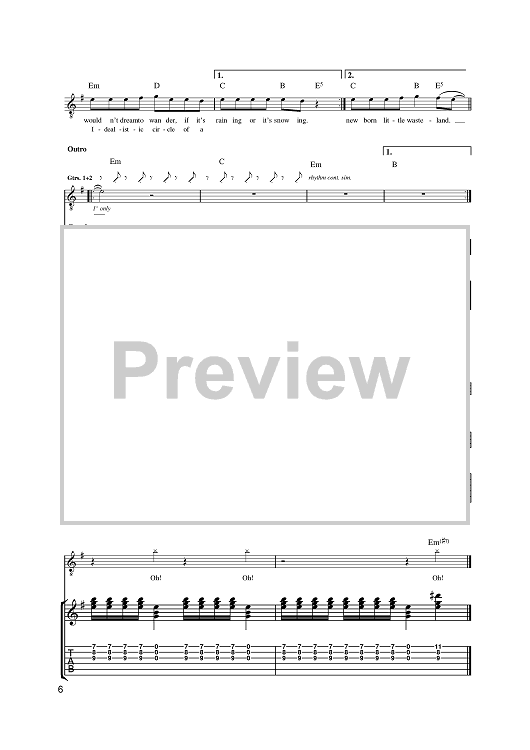 Digital Sheet Music for Wasteland by Kyle Falconer, The View, Keiren Webster scored for Guitar Tab; id:396771