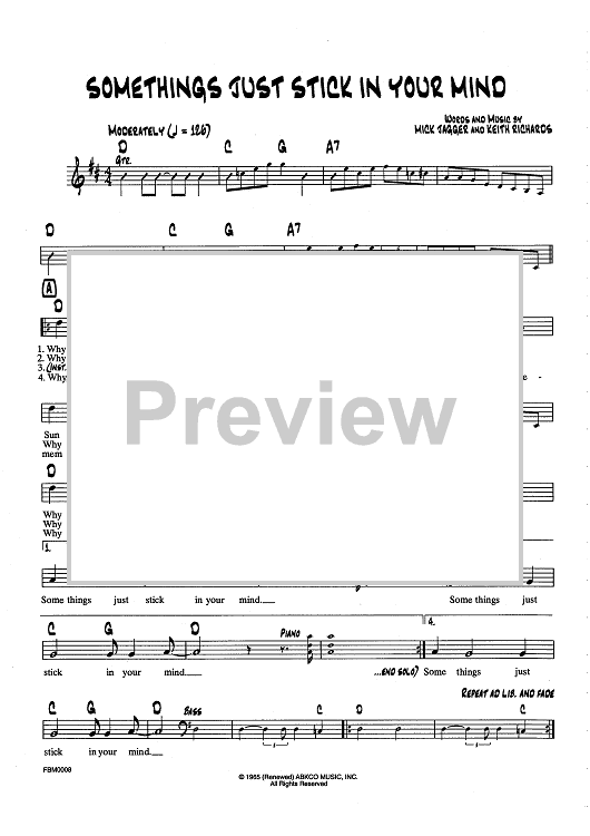 Digital Sheet Music for Somethings Just Stick In Your Mind by Keith Richards, The Rolling Stones, Mick Jagger scored for Lead Sheet; id:437597