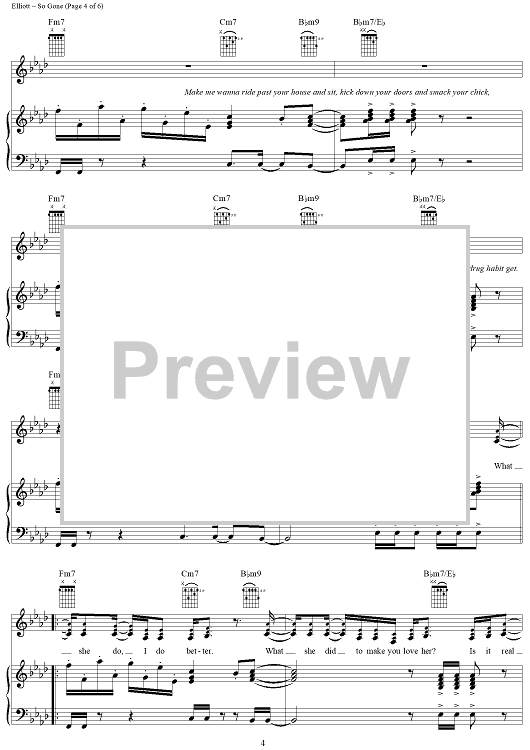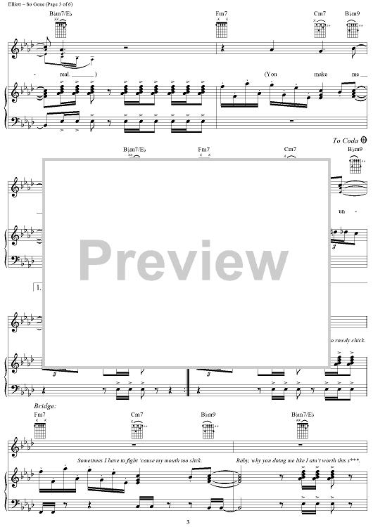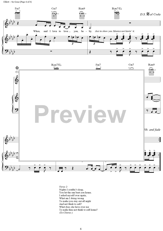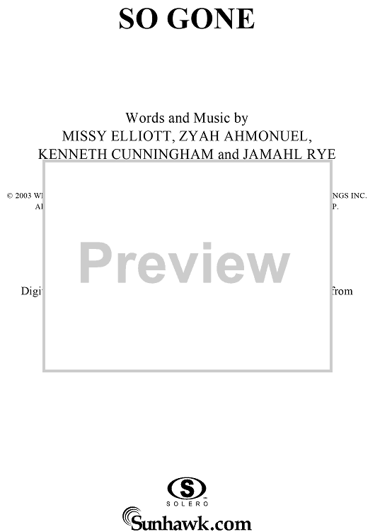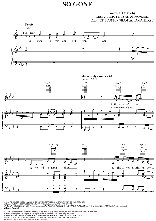 Digital Sheet Music for So Gone by Monica, Missy Elliott, Zyah Ahmonuel, Kenneth Cunningham, Jamahl Rye scored for Piano/Vocal/Chords; id:297385