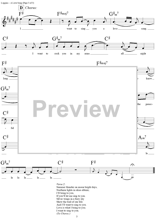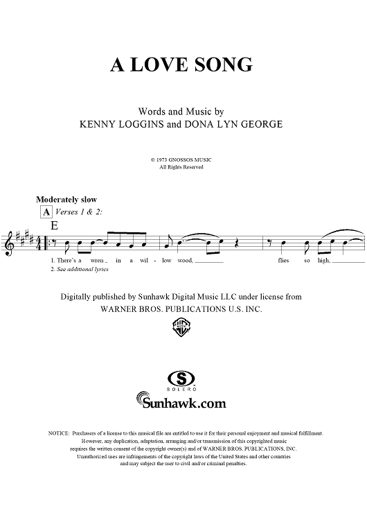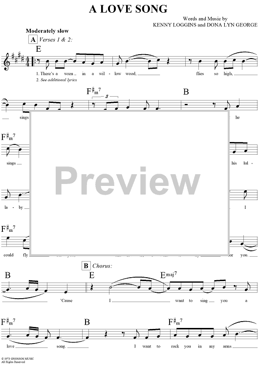 Digital Sheet Music for A Love Song by Kenny Loggins, Dona Lyn George scored for Lead Sheet; id:293987