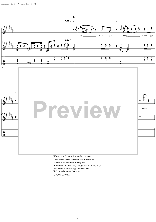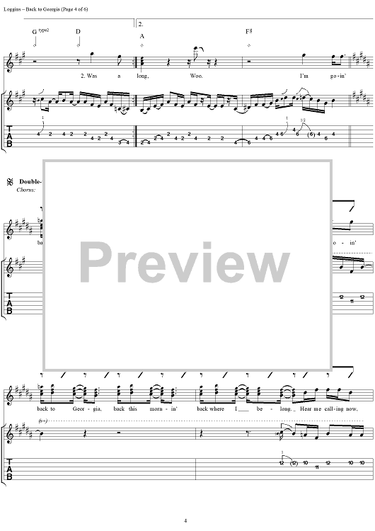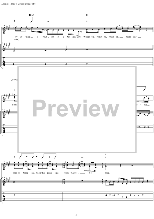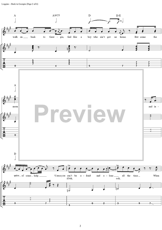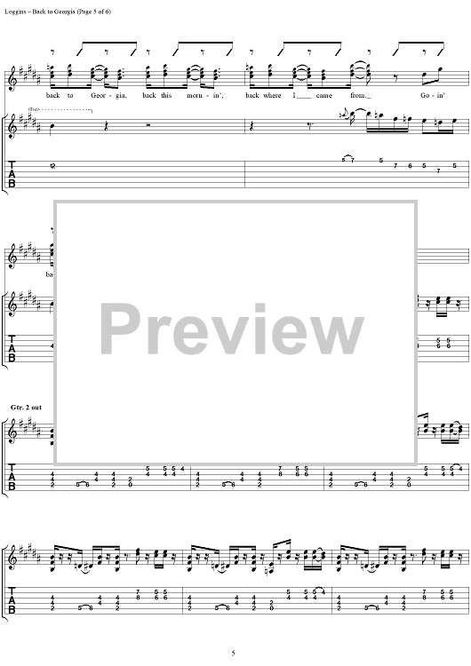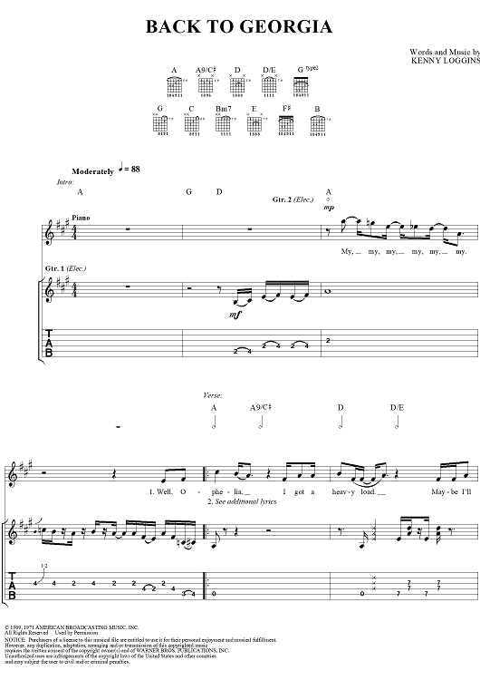 Digital Sheet Music for Back to Georgia by Kenny Loggins, Jim Messina scored for Guitar Tab/Vocal; id:113974