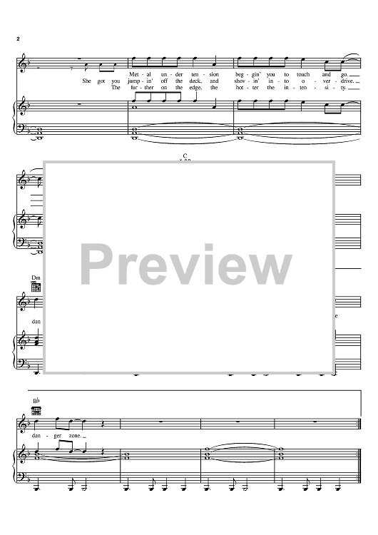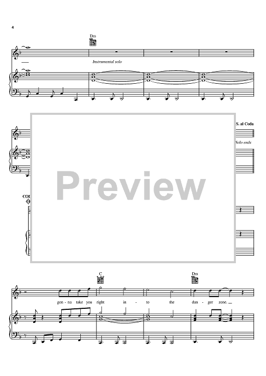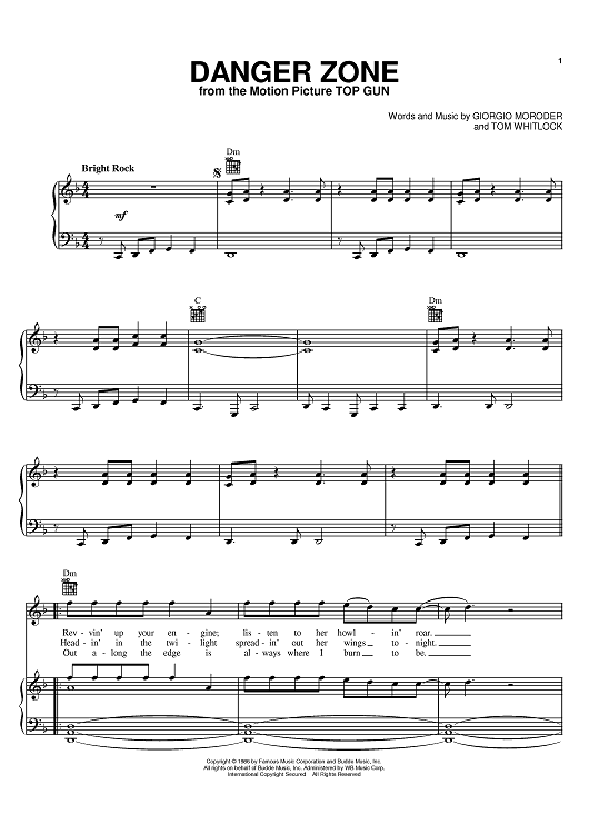 Digital Sheet Music for Danger Zone by Kenny Loggins, Giorgio Moroder, Tom Whitlock scored for Piano/Vocal/Chords; id:368036