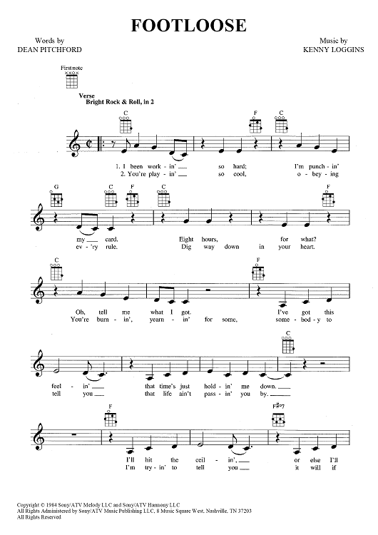 Digital Sheet Music for Footloose by Dean Pitchford, Kenny Loggins scored for Ukulele/Vocal; id:463709